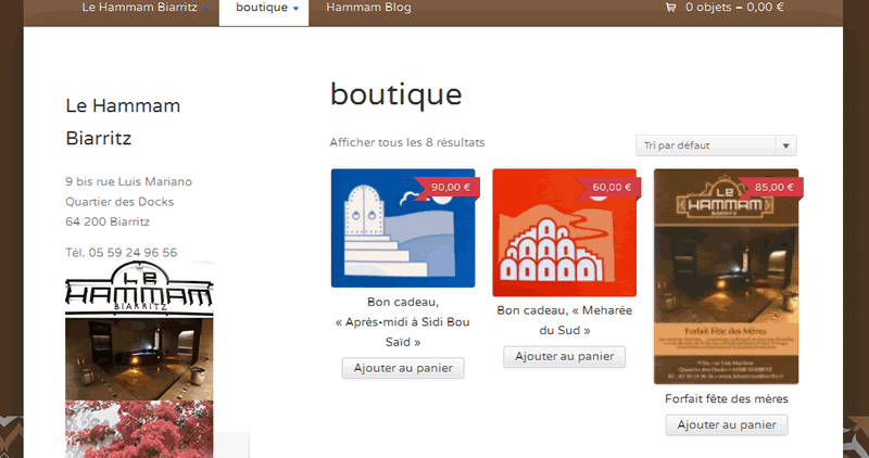 Cre@Net64 a donc repensé le site en proposant un « 3 en 1 » : un site vitrine, un blog et un site de vente en ligne avec paiement sécurisé pour les forfaits du Hammam.